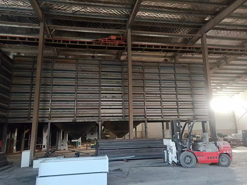 方形鋼板倉(cāng)易產(chǎn)生不可挽回的變形的部位是上下層壁板連接部位的內(nèi)橫梁和外橫梁的中間區(qū)域,因?yàn)槟壳皣?guó)內(nèi)外使用的大部分是單倉(cāng)2.5 mx 2.5 m鋼板倉(cāng),所以我們對(duì)這 個(gè)型號(hào)的鋼板倉(cāng)進(jìn)行了拉力試驗(yàn)。